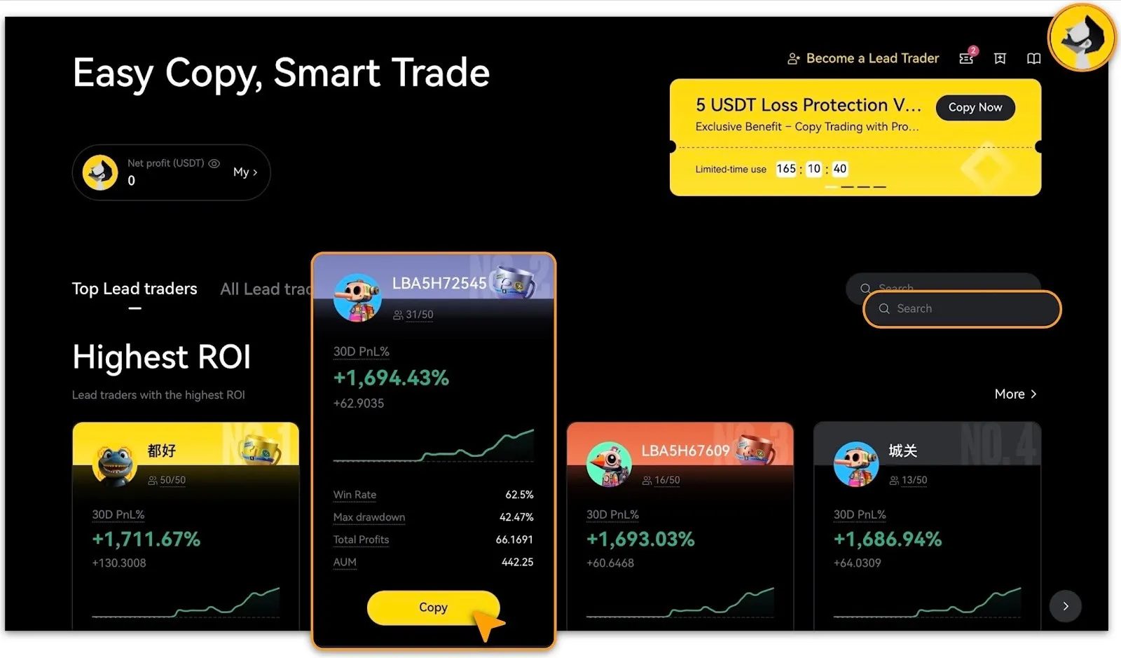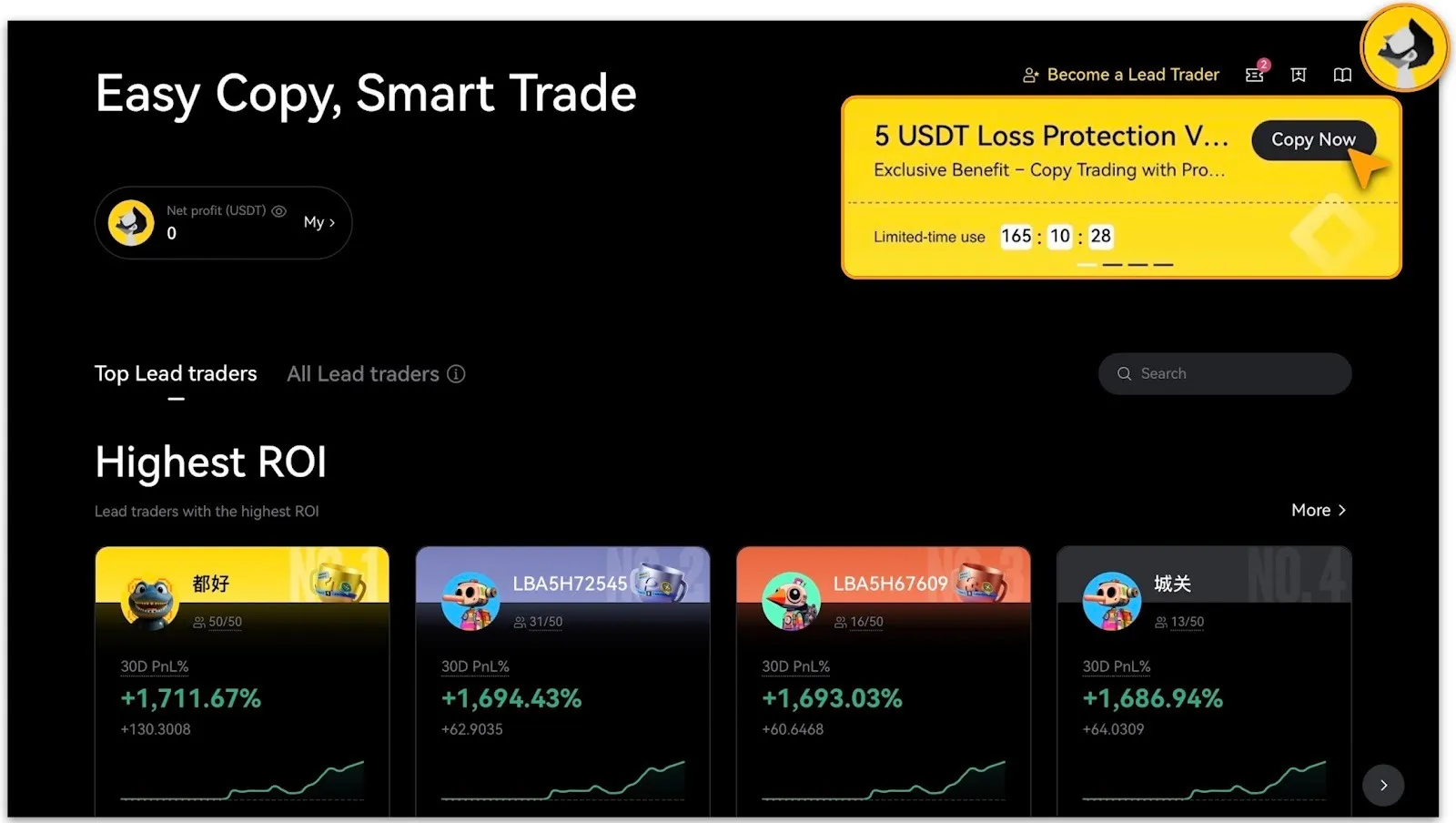 if your copy-trade closes with a 5 USDT loss, the system fully compensates 5 USDT.